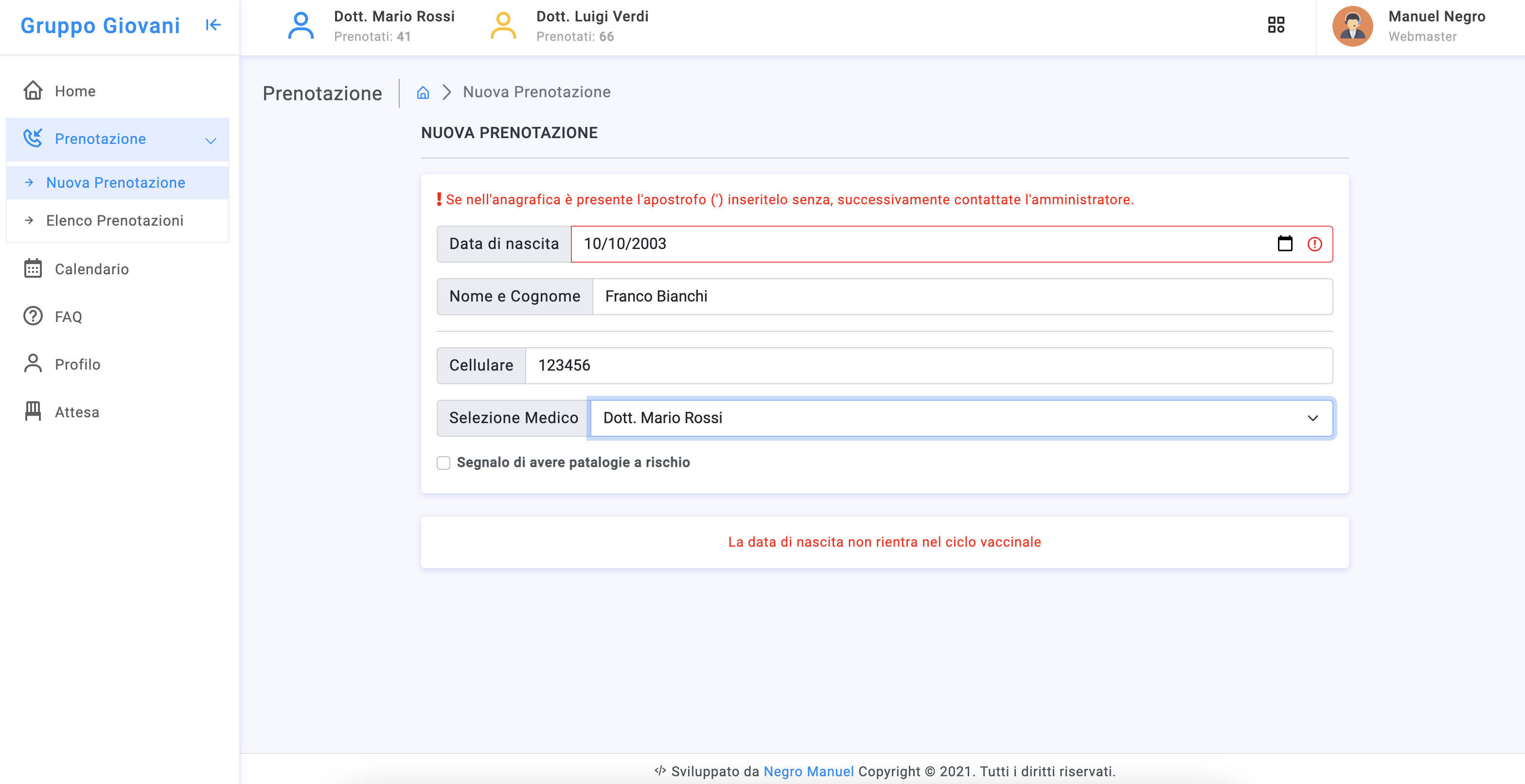 Gestionale per la prenotazione dei vaccini Anti-Infuenzali 2021.